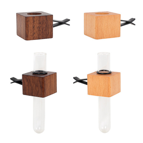 Vase de voiture moderne en bois massif de noyer Sortie d'air d'aromathérapie moderne pour bouquet de fleurs Décoration d'accessoires de voiture